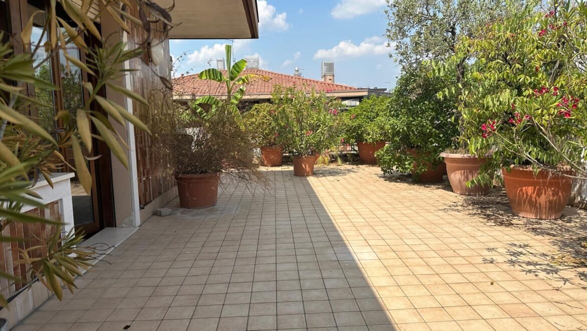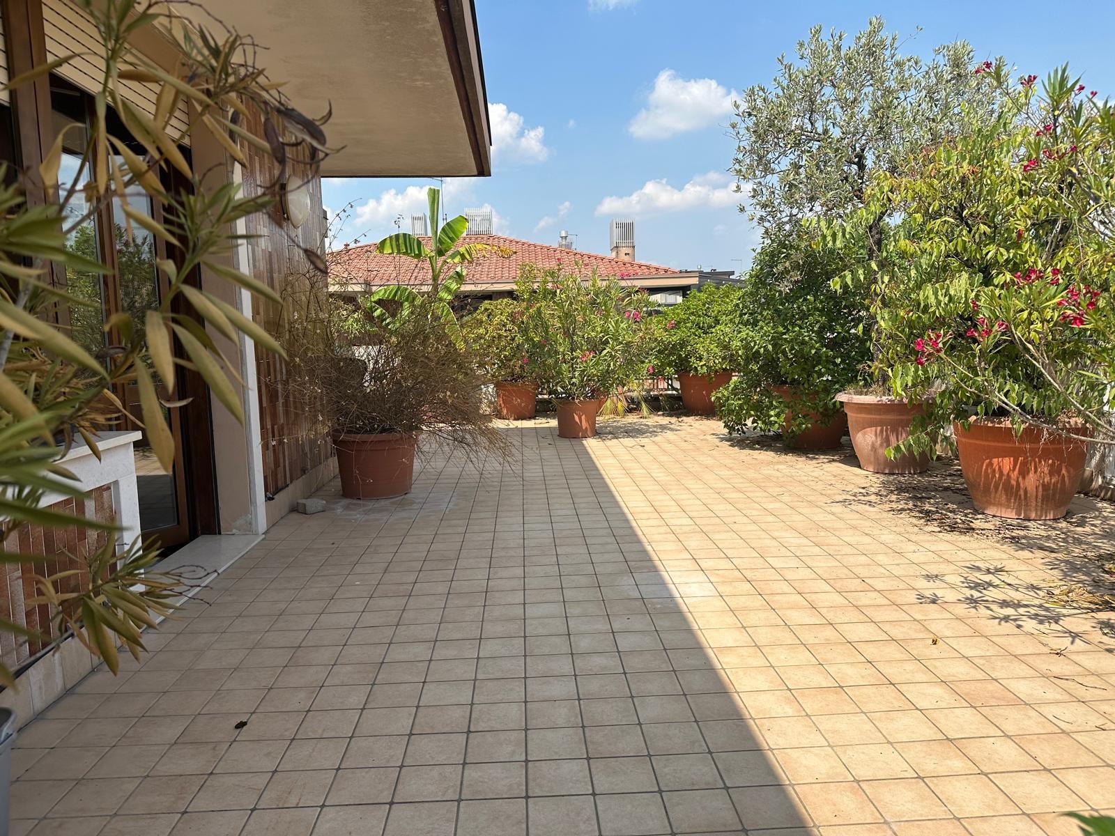 Vendesi splendido attico esposto su quattro lati, dotato di due grandi terrazze, completo di due garage (comunicanti tra loro in larghezza) ed un comodo magazzino, nonché servito da ascensore interno. Sito in ottimo contesto condominiale, con giardino comune ben curato, a due passi dalla Restera e dal centro storico, ottimamente collegato alla viabilità stradale.