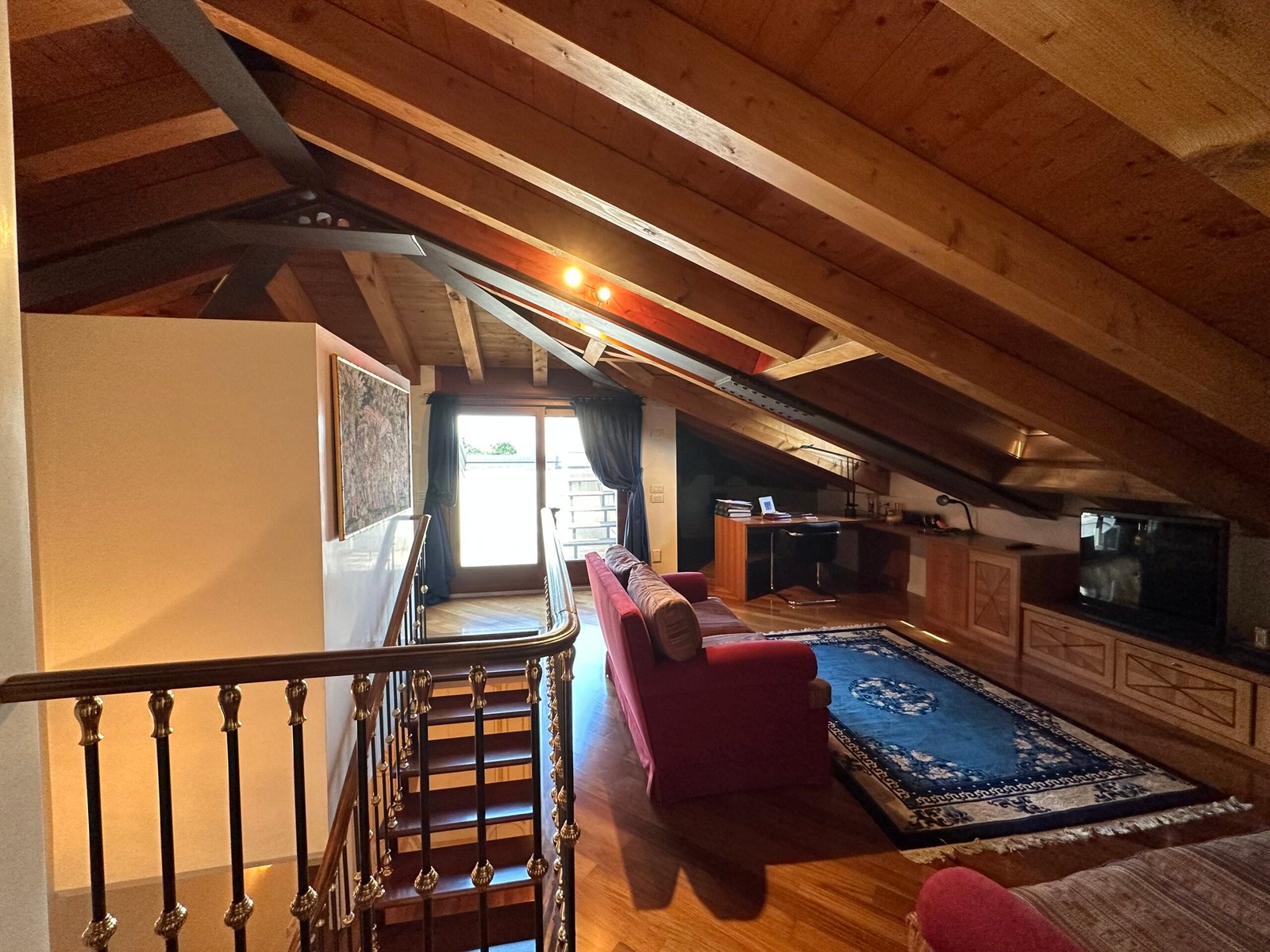 All’interno lo spazio abitativo è distribuito su tre livelli fuori terra: al piano rialzato si sviluppa un’ampia zona giorno costituita da ingresso, ampio salone, cucina separata e bagno di servizio; salendo al piano primo e poi al sottotetto troviamo quattro camere da letto, un vano guardaroba, un salottino/studio, tre bagni e due terrazze; mentre al piano seminterrato sono ubicati una taverna, un grande garage di 39 mq calpestabili, magazzino, cantina, ripostiglio e centrale termica.