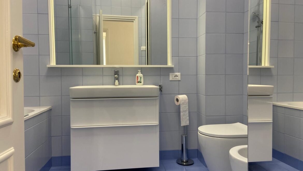65 mq utili che si caratterizzano per le linee pulite, l’aspetto elegante, accogliente, ordinato, così distribuiti: ingresso, soggiorno separato (dotato di divano-letto e climatizzazione), cucina separata (completa di elettrodomestici nuovi ed accessoriata di stoviglie, bicchieri, posate, pentole, macchina del caffè), un bagno (con vasca, lavatrice ed asciugatrice) ed un ripostiglio (con aspirapolvere inclusa) nella zona giorno; una grande camera matrimoniale (dotata di climatizzazione) con annessa cabina armadio, bagno privato (con doccia) e l’accesso ad un delizioso terrazzino con affaccio sull’acqua e ripostiglio esterno, nel reparto notte.