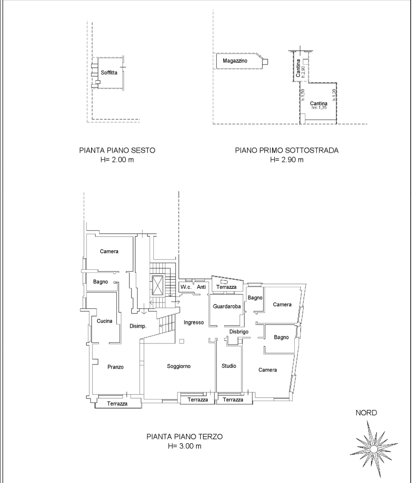 Ben divisa dal resto della casa, si trova la zona notte composta da uno studio/camera singola, disimpegno, due grandi camere matrimoniali ciascuna servita da un proprio bagno privato ed una anche con terrazzino.