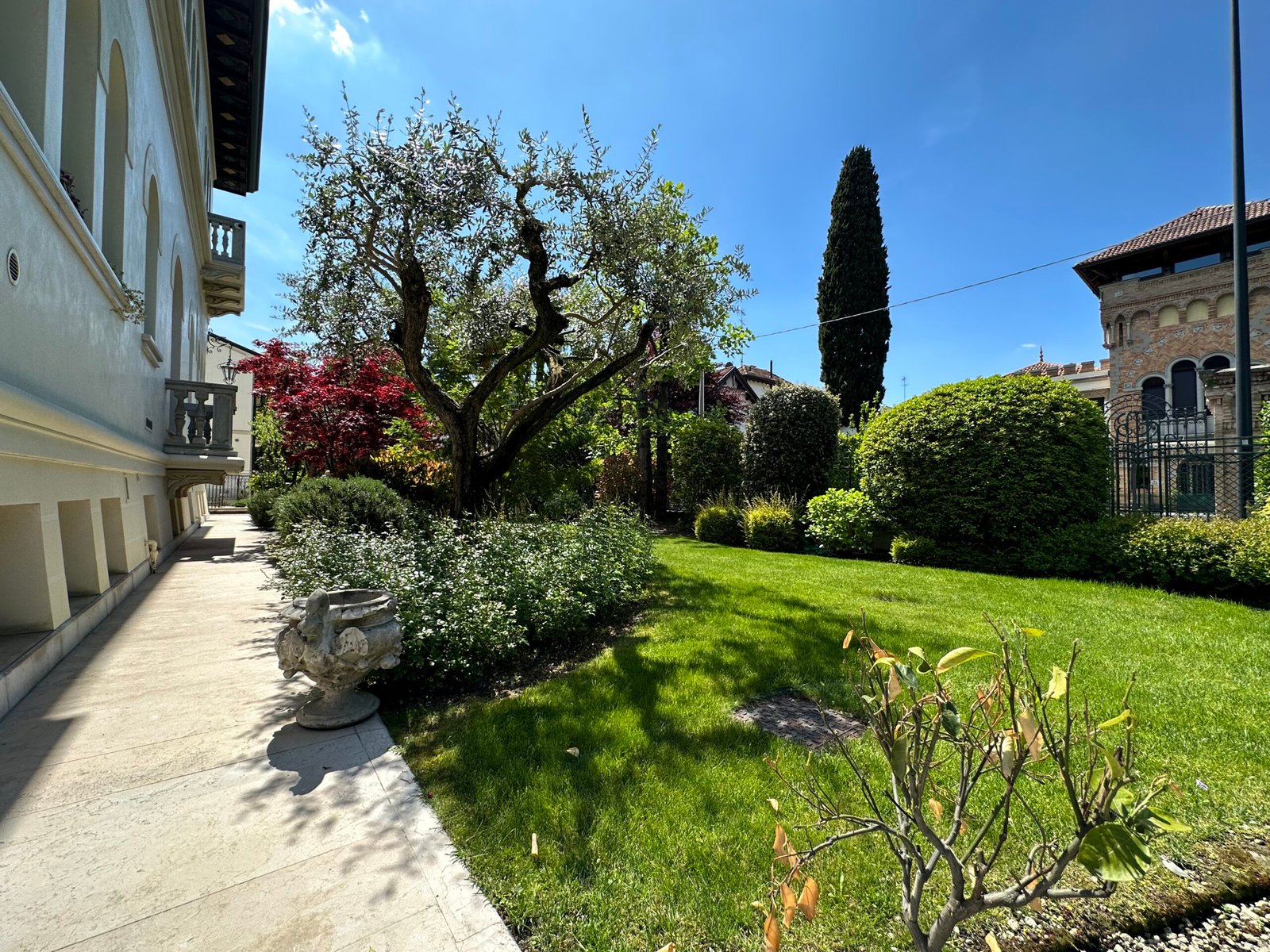 Nell’immediato fuori mura, in uno dei quartieri più signorili della città, questa villa anni Trenta incanta con il suo stile raffinato, caratterizzato da linee eleganti, un incantevole giardino piantumato e materiali nobili come gli splendidi pavimenti alla veneziana delle zona giorno e i caldi parquet della zona notte.